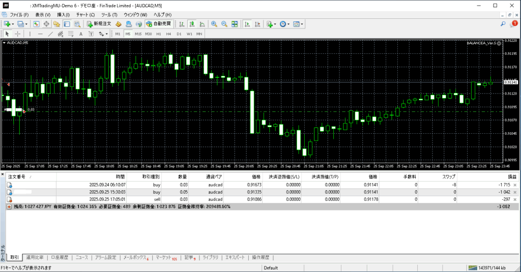 昨日のBALANCEAトレード結果:2025年9月25日(木)