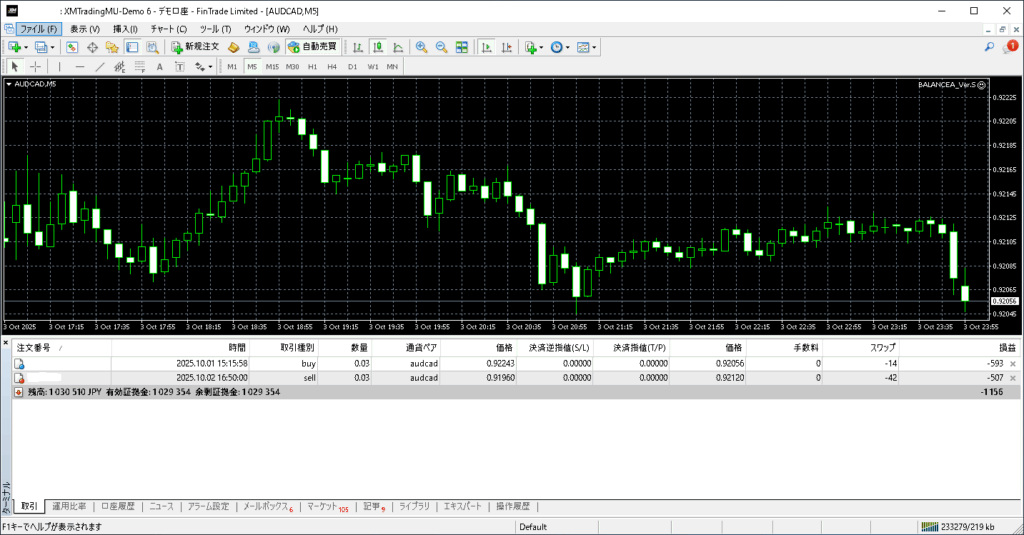 昨日のBALANCEAトレード結果:2025年10月3日(金)
