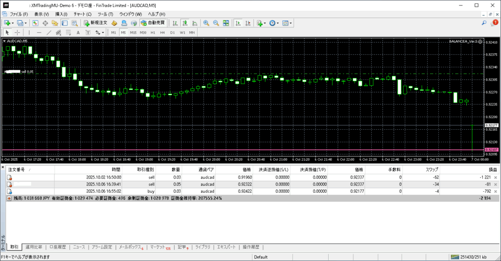 昨日のBALANCEAトレード結果:2025年10月6日(月)