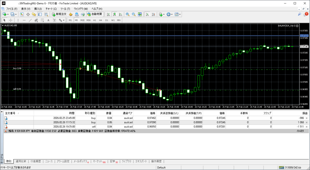 昨日のBALANCEAトレード結果:2026年2月26日(木)